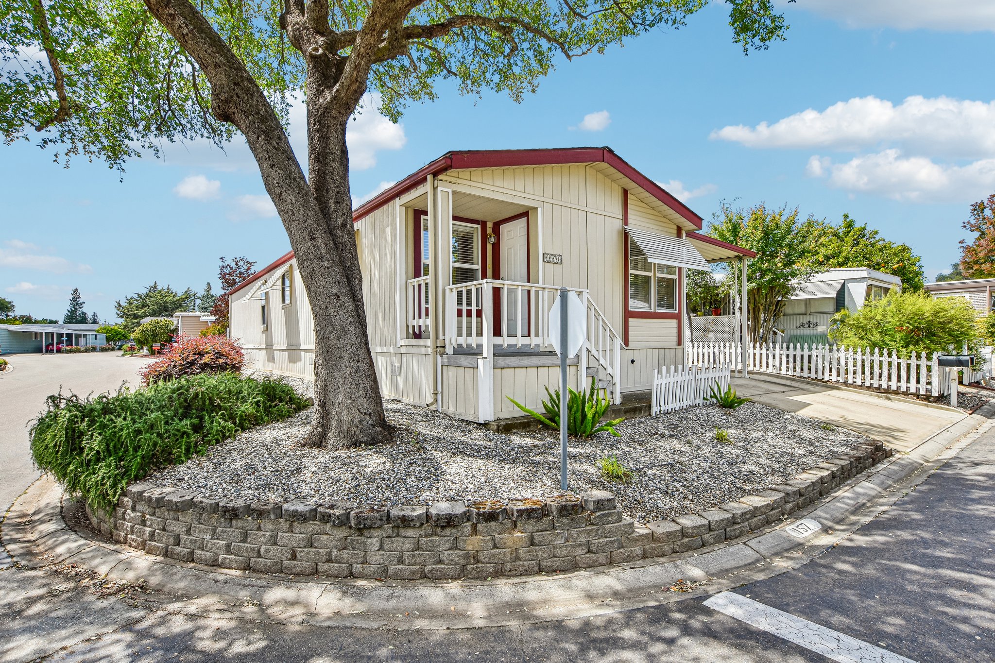 Welcome to this charming mobile home located in the Lakeside Village, a peaceful 55 and over community in the heart of Folsom. This spacious, well-maintained double-wide home is positioned on a corner lot, shaded by a beautiful mature oak tree that adds both charm and cooling comfort. Thoughtfully designed for accessibility and ease, the home features a wheelchair lift on the Northwest side, and an open-flowing layout. The primary suite, tucked away at the back for maximum privacy, with a generous walk-in closet and conveniently designed shower. Beyond the home, you'll enjoy a lifestyle of relaxation and connection with access to the pool and spa. Come see if you can make this your new home.